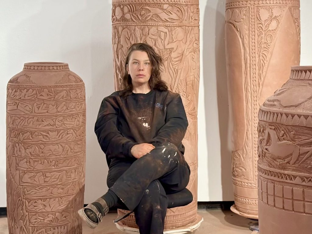 “Though I labored alongside her for years, I don’t understand how this younger artist from Joshua Tree sgraffito’d mythologies onto stone as if she was beamed in from Pompeii A.D,” Nelson mentioned. “She labored in divine, painful frenzies for days and weeks on finish. Monuments emerged. 5-hundred-pound sculpture inlaid with obsessively, fantastically detailed linework and complete narratives. I used to be awed by her artwork and prodigy, however what I’ll miss most of all is our deep, foolish friendship. Lengthy conversations in her studio in regards to the lonely, impressed lifetime of artmaking. She was humorous and relentless and made artwork of the gods.”