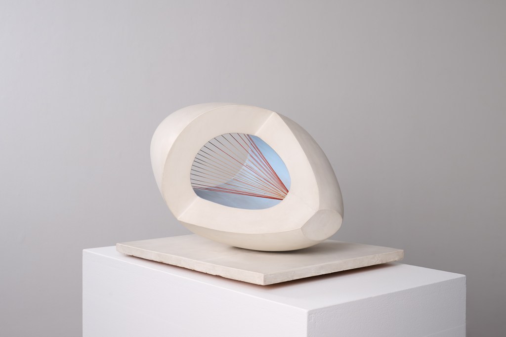 Hepworth produced Sculpture with Color (Oval Kind) Pale Blue and Pink throughout World Warfare II. A press assertion famous that “it’s one among solely a handful of picket carvings made by Hepworth in the course of the Nineteen Forties, and one of many first main wooden carvings she made.”