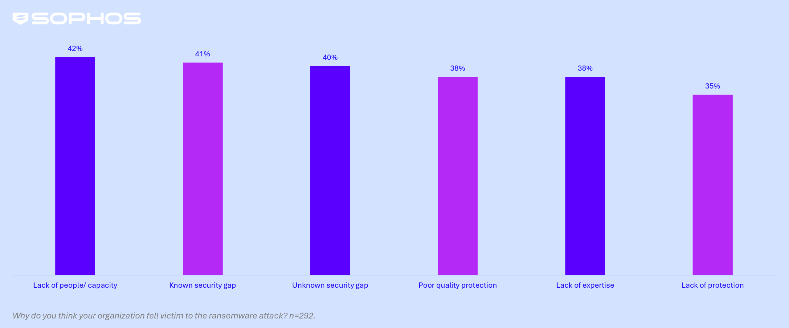 - High Organizational Trigger: The commonest organizational issue contributing to assaults was an absence of individuals/capability (i.e., inadequate cybersecurity consultants monitoring programs), named by 42% of victims. This was intently adopted by recognized safety gaps (weaknesses organizations had been conscious of however had not addressed), cited in 41% of assaults.