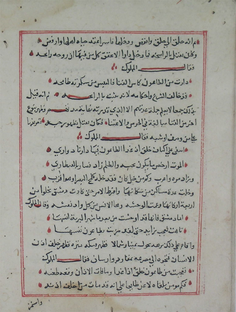 This work, a “maqāma” (a type of Arabic storytelling that usually encompasses a wandering trickster), was written by the poet and historian Ibn al-Wardi in 1348/9 in Aleppo. Over time, readers mistook it for a literal account of how the illness traveled throughout the continent.