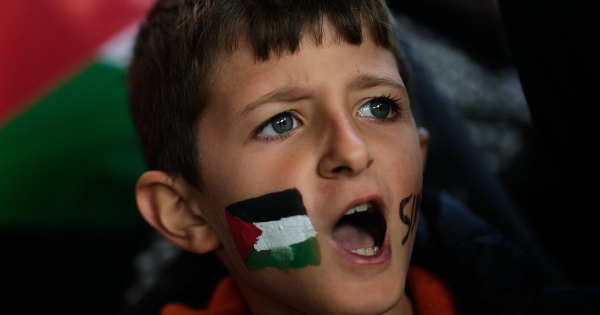 After packing the central Museum Sq., the protesters walked by means of town heart, holding Palestinian flags and peace emblems. One placard learn, “Ashamed of the federal government.”