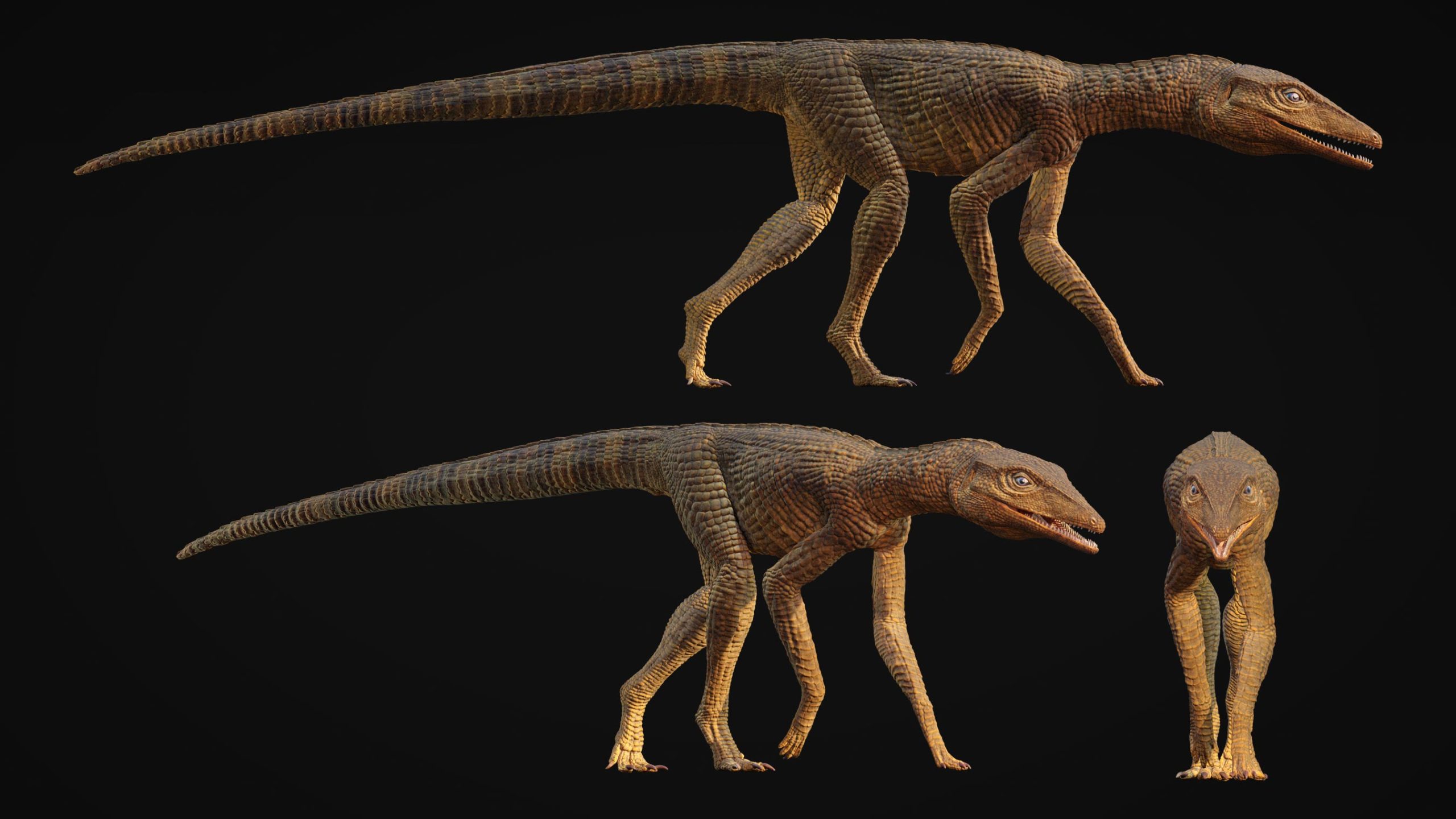 During the Triassic, this region was an elevated area bordered by hot, dry plains, and the animal would have hunted small reptiles, amphibians, and early mammals among dense vegetation.