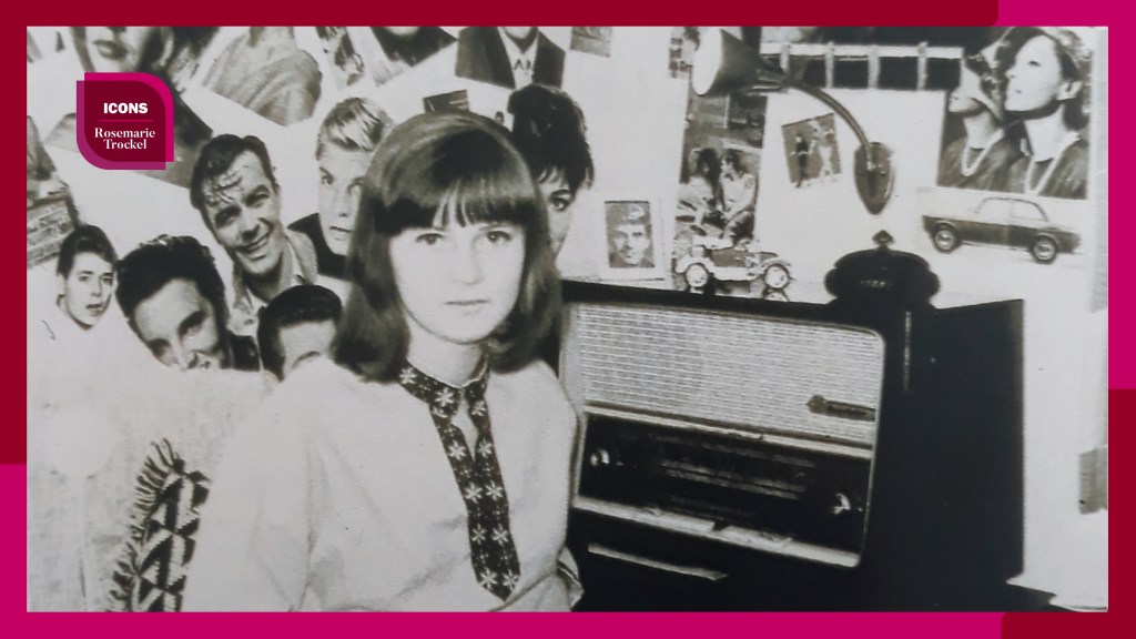 Teenage Rosemarie Trockel sits in a room plastered with footage of celebrities—as youngsters are wont to do. It’s Nineteen Sixties West Germany, and she or he’s in her older sister’s bed room. Behind her, cutouts of Brigitte Bardot seem half a dozen occasions in a sea of engaging faces. This all makes up a black-and-white snapshot; the collage on the wall flattens the area such that Trockel’s personal head comes near mixing into the group, although she is evidently extra uncomfortable in entrance of the digicam than the varied starlets.
