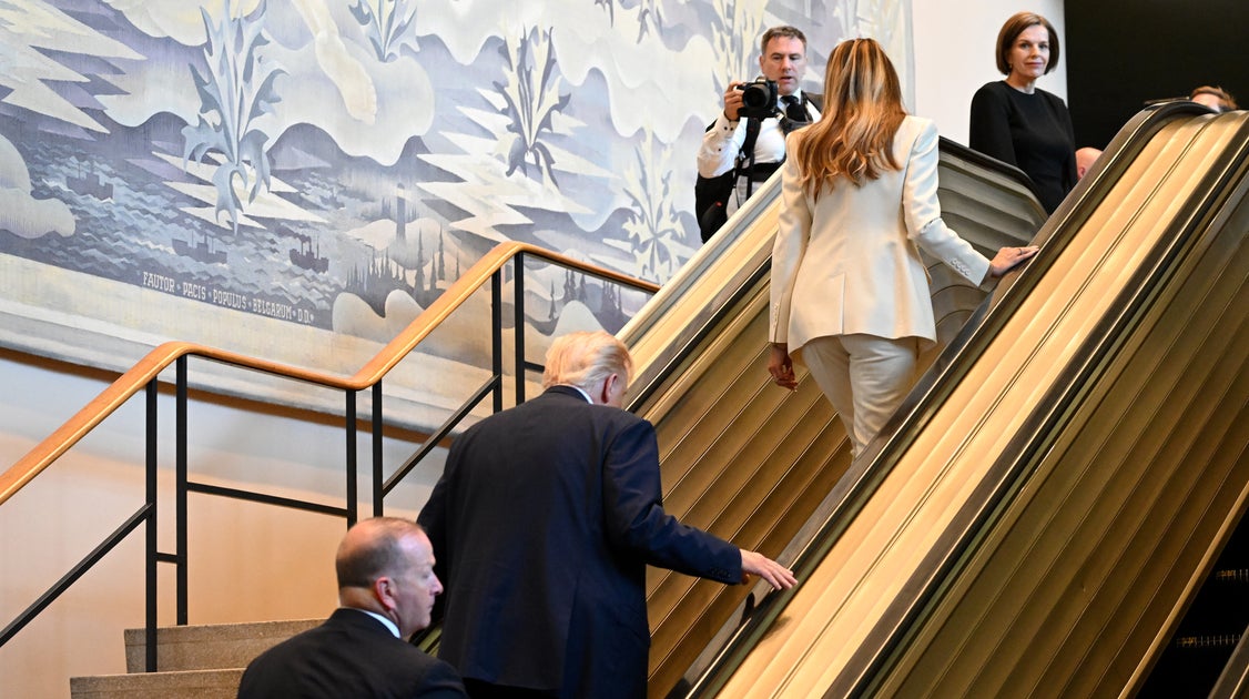 He stated Trump’s videographer had been touring backwards up the escalator to seize his arrival with First Woman Melania Trump.